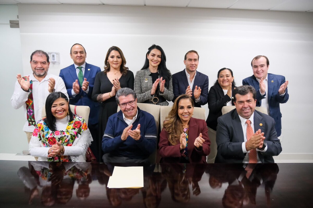 Ciudad de México.- La gobernadora de Quintana Roo Mara Lezama Espinosa y el diputado Ricardo Monreal Ávila, presidente de la Junta de Coordinación Política de la Cámara de Diputados, se reunieron con la bancada de Morena y PVEM de Quintana Roo.
