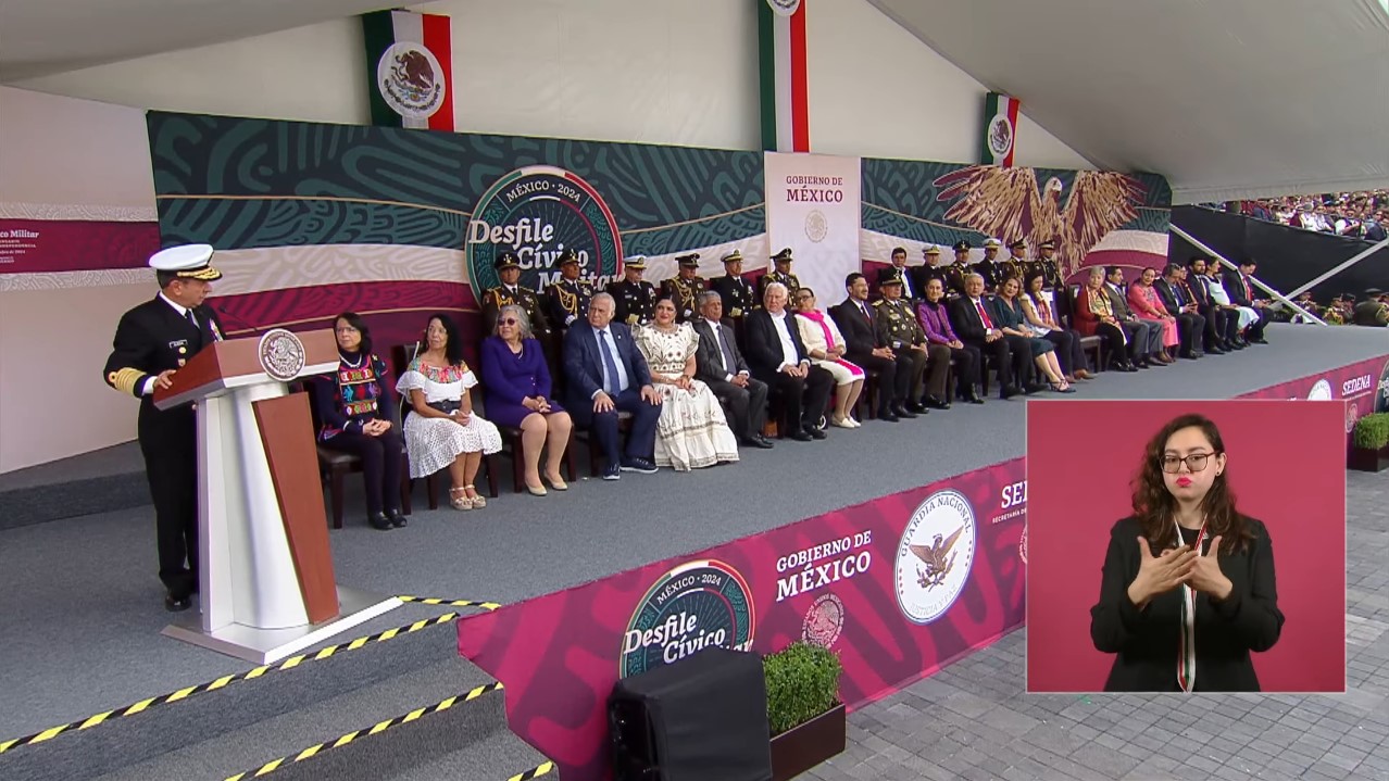 “Desfilamos con gallardía frente a usted, enalteceremos que el haya sabido representar la voluntad y el deseo de las y los mexicanos para poner en alto la tierra que nos vio nacer y nos da identidad. Gracias a nuestro querido pueblo que confía en nosotros y muestra de ello es contar aquí con ustedes, en este desfile”.