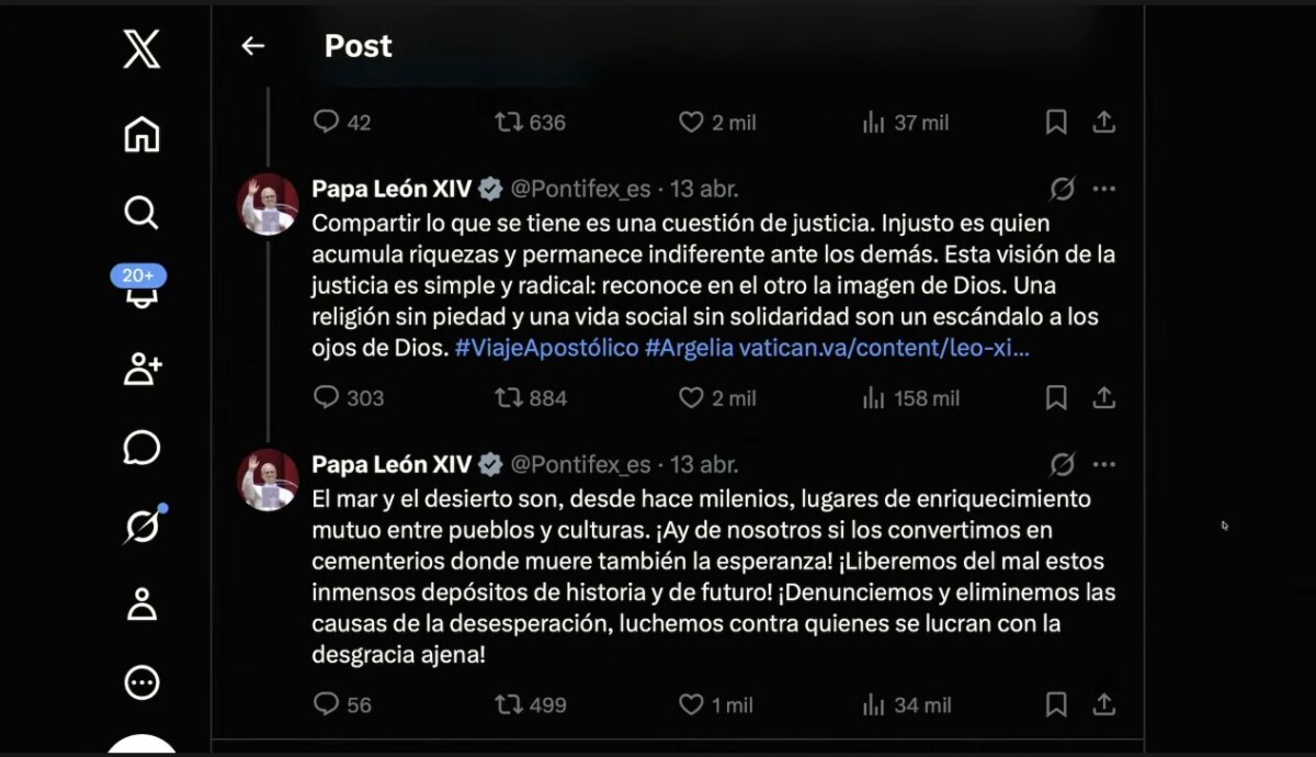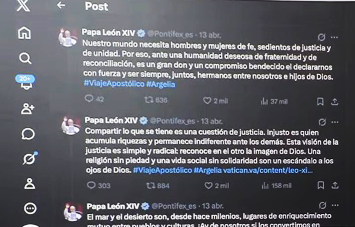 Así, leyó tres mensajes que el papa León XIV publicó ayer en su cuenta de la plataforma X: