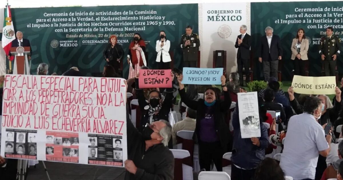 Pero el ingreso de sobrevivientes y familiares de víctimas de la guerra sucia a la prisión militar, ubicada en los límites de la Ciudad de México y el Estado de México, también está marcado por el escepticismo, como lo manifestaron en la ceremonia del 22 de junio con pancartas: “¡Si no entra la justicia, de nada sirve entrar!”