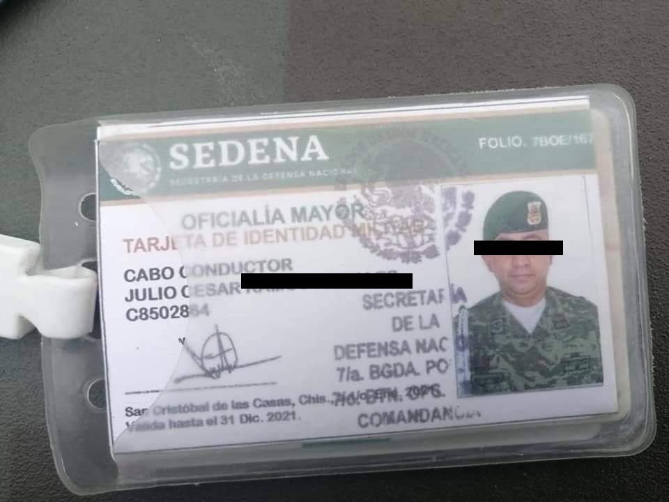 En un desesperado intento por evadir la inspección, los tripulantes hicieron un último intento y mostraron identificaciones que los acreditaban como cabo conductor Julio César R.M., originario de Tabasco, perteneciente al 7° Batallón de Operaciones Especiales, así como Capitán 2° Didier W.P. perteneciente al 29° Batallón de la Policía Militar, oriundo de Puebla; ambos actualmente comisionados y en adiestramiento en el cuerpo de Policía Militar.