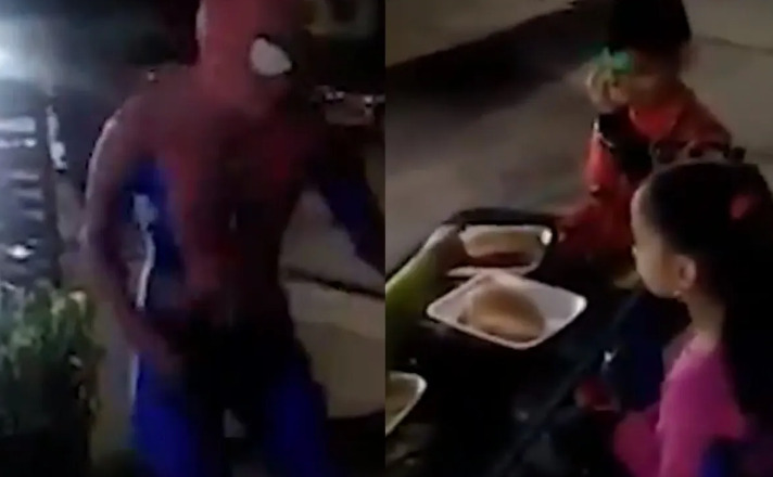 Una joven que amenizaba una fiesta infantil vestida del “hombre araña” escuchó a su "sentido arácnido" e hizo a los chicos entrar rápido a casa