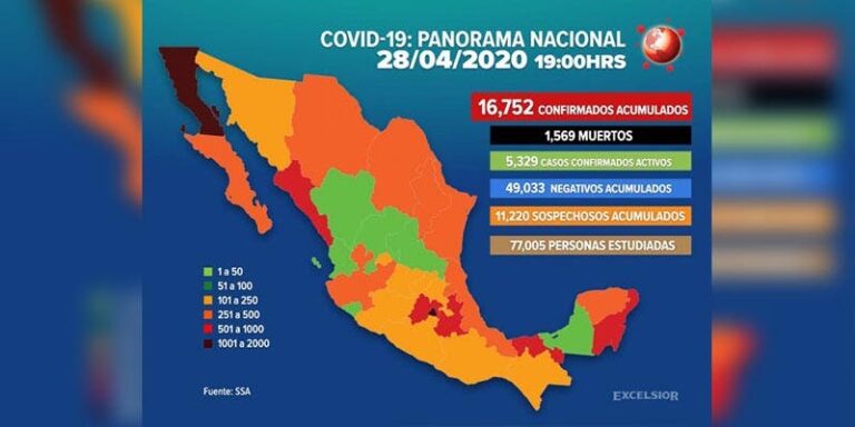 Suman 16 mil 752 los casos positivos de Covid-19 en México.- Las autoridades de la Secretaría de Salud Federal (Ssa) Informaron que en México los casos positivos de Covid-19 aumentaron a 16 mil 752.