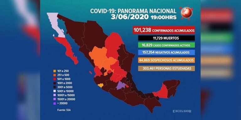 Supera México los 100 mil casos de Covid-19.- Autoridades de la Secretaría de Salud federal, informaron que el número de casos confirmados por Covid-19 aumentó a 101 mil 238, en México.