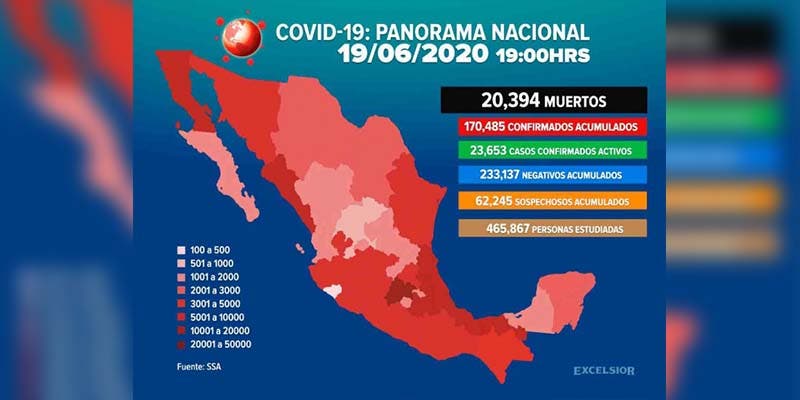 Supera México los 20 mil muertos por Covid-19.- Autoridades de la Secretaria de Salud indicaron que este viernes 19 de junio, México superó las 20 mil muertes por Covid-19.
