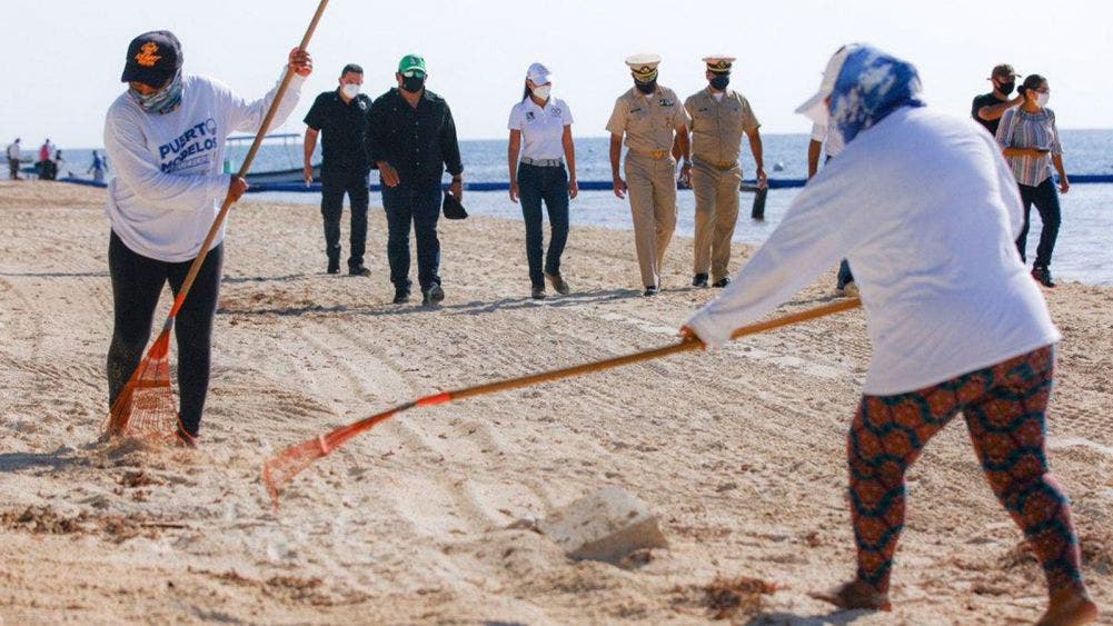 Cabe mencionar que entre el 19 de junio y el inicio de julio se retiraron alrededor de 2,100 metros cúbicos de la macro alga en las playas públicas de Puerto Morelos, con la participación de alrededores de 60 trabajadores en labores manuales con rastrillos y carretillas, además de que se cuenta con 3 barredoras, 1 banda anfibia, 1 banda terrestre y 4 camionetas de 3.5 toneladas.