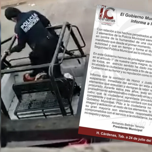 Armando Beltrán, presidente municipal de Cárdenas, dio a conocer la noticia a través de un comunicado, el cual fue difundido en redes sociales, y en donde el funcionario señaló que estos estos dos elementos policíacos “ensucian la labor respetuosa, que hemos procurado durante estos tres años”.