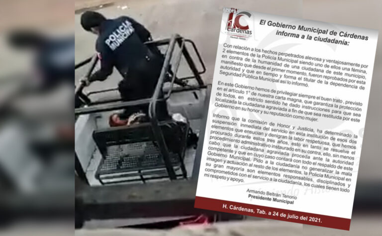 Armando Beltrán, presidente municipal de Cárdenas, dio a conocer la noticia a través de un comunicado, el cual fue difundido en redes sociales, y en donde el funcionario señaló que estos estos dos elementos policíacos “ensucian la labor respetuosa, que hemos procurado durante estos tres años”.