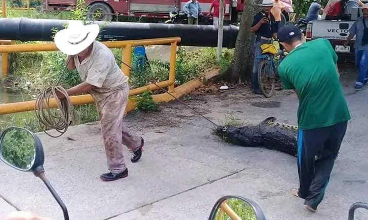 Este caso trascendió luego de su difusión en las redes sociales, donde se compartieron un par de imágenes en las que se observa a dos personas que sometieron con cuerdas y arrastraron al reptil sobre el puente de la localidad.