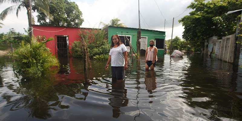 El sector Valle Verde de la colonia Gaviota Sur en Villahermosa, el agua estancada llegó hasta la altura de las marquesinas de los negocios, por lo que los ciudadanos han informado que la piel se les está “partiendo” por caminar entre el agua acumulada por las fuertes lluvias.