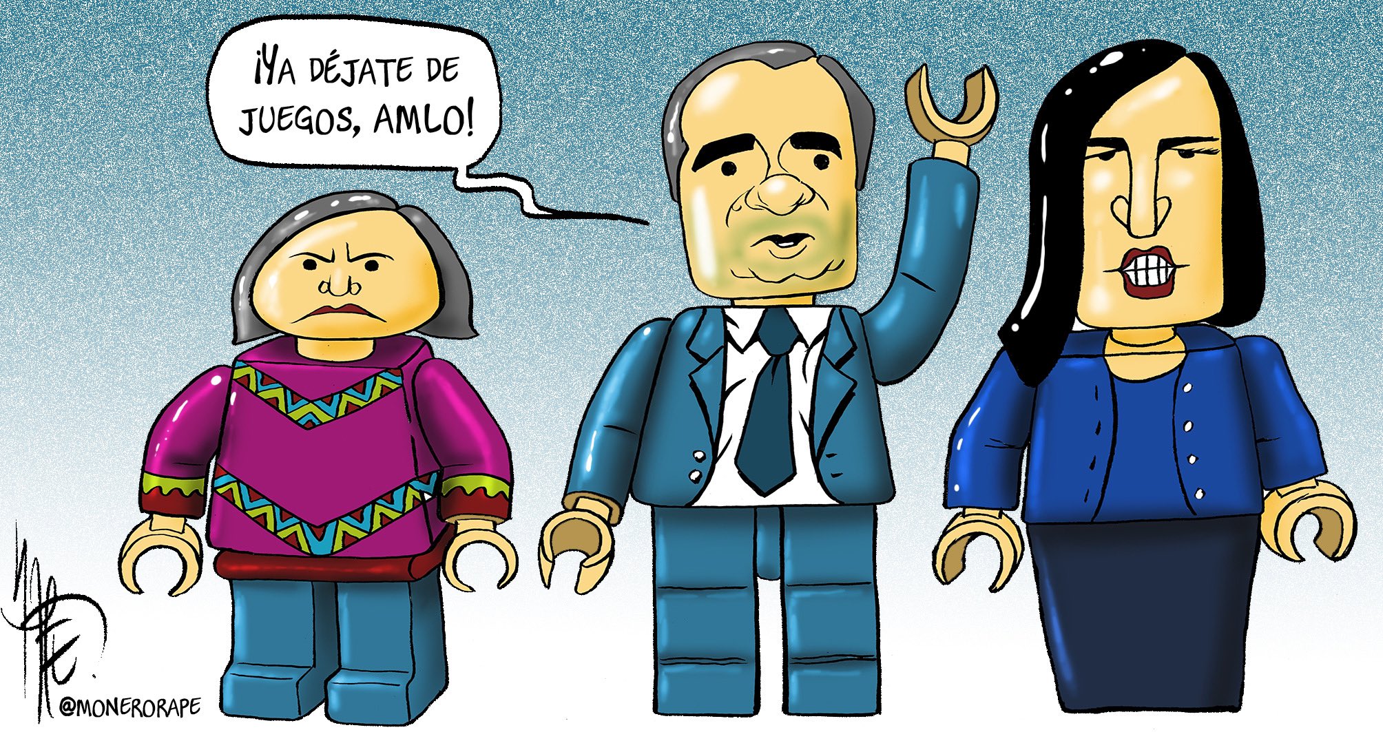 En conferencia de prensa en el recinto legislativo de Paseo de la Reforma, a falta de algo mejor que hacer, la senadora Xóchitl Gálvez mostró “el juguete” construido a base de bloques, mientras sus compañeros, como Julen Rementería, portaban la caja del “producto”, que incluso contenía una ilustración de AMLO.