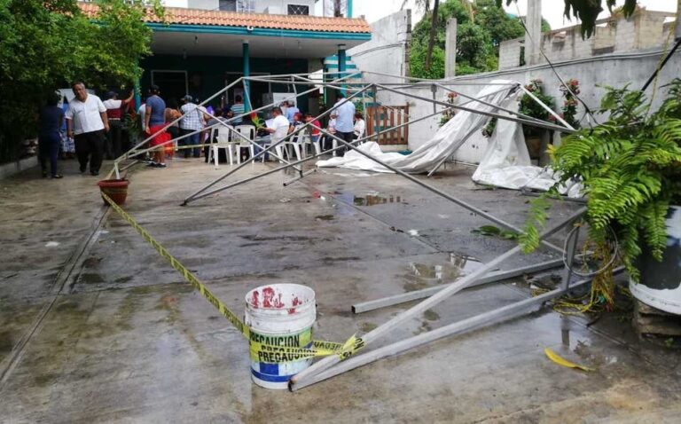 Una mujer de 60 años de edad, resultó lesionada en Ciudad Madero, luego que el toldo que se instaló en la casilla electoral, se derrumbara por el peso del agua que provocaron las lluvias.