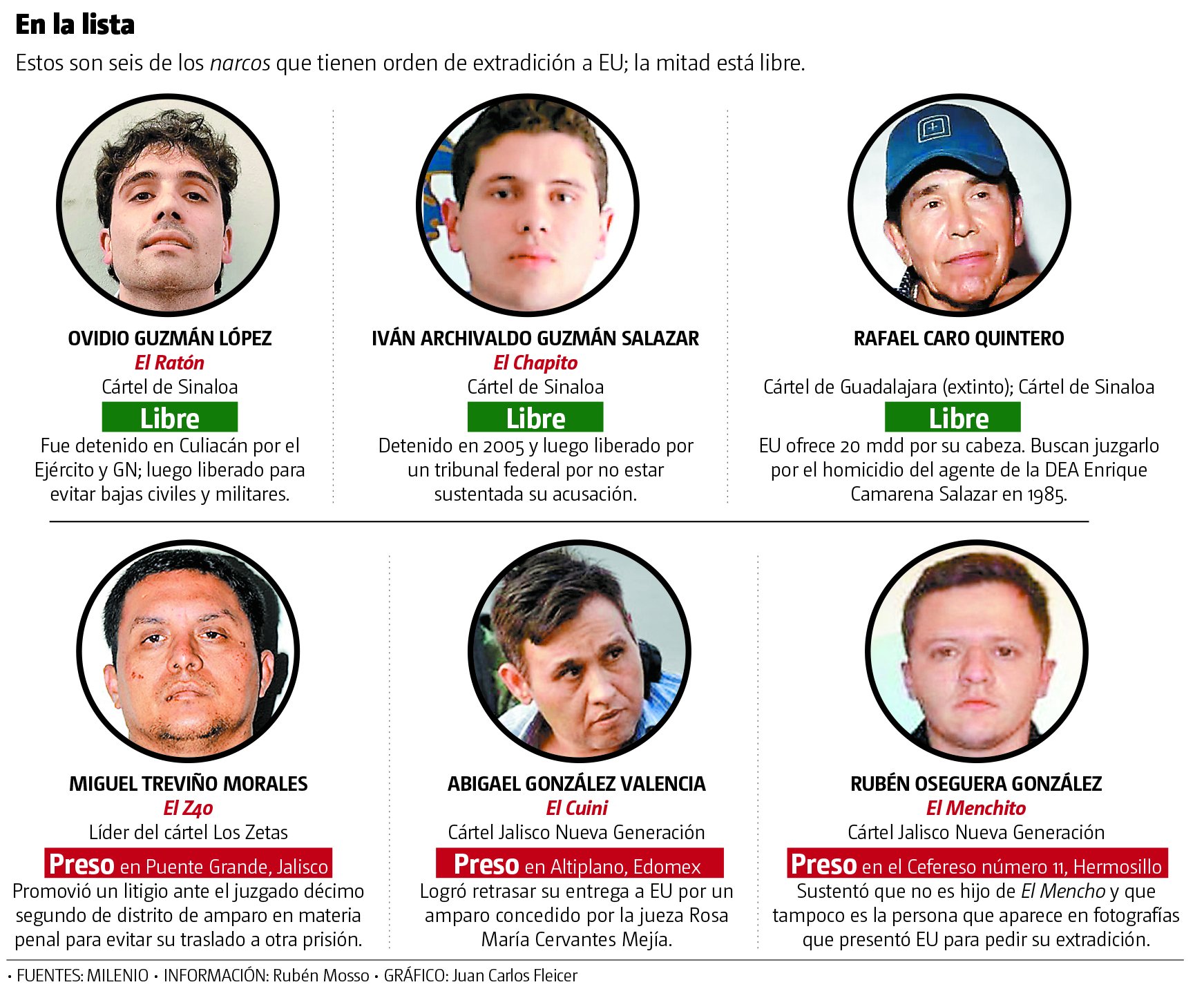 Destacó que todos los hijos de “El Chapo” Guzmán tienen órdenes judiciales en Estados Unidos, pero que también se está buscando al compadre de Joaquín, “El Mayo” Zambada y a su rival, Nemesio Oseguera Cervantes, “El Mencho”.
