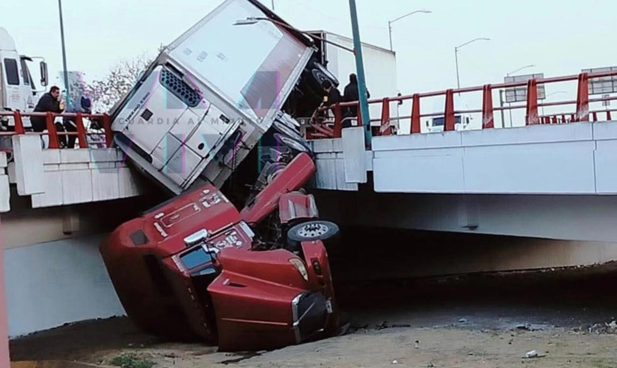 De acuerdo con los primeros informes, el tráiler perdió el control mientras circulaba sobre el puente y terminó precipitándose, dejando su carga dispersa sobre la vía y la caja del vehículo atorada en la parte superior del puente.