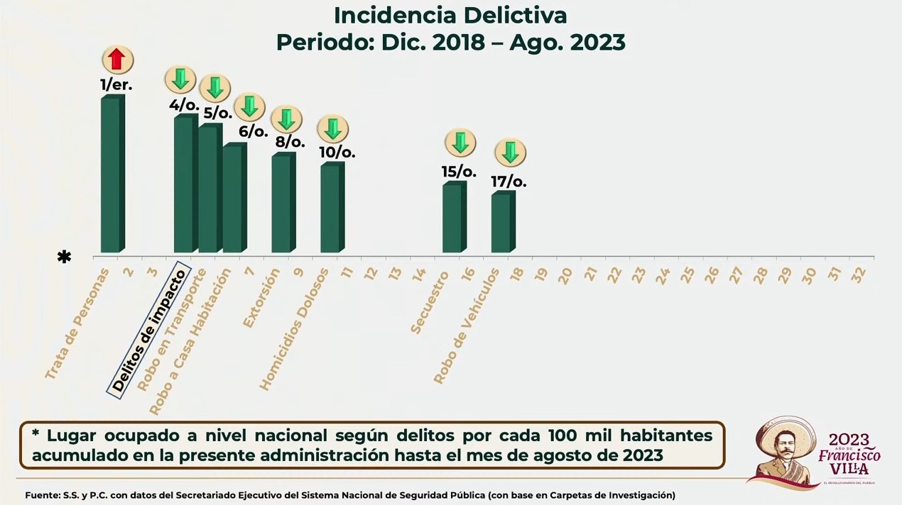 La entidad ocupa el lugar número cuatro de los 32 estados del país por delitos de impacto, de acuerdo con datos del Secretariado Ejecutivo del Sistema Nacional de Seguridad Pública.
