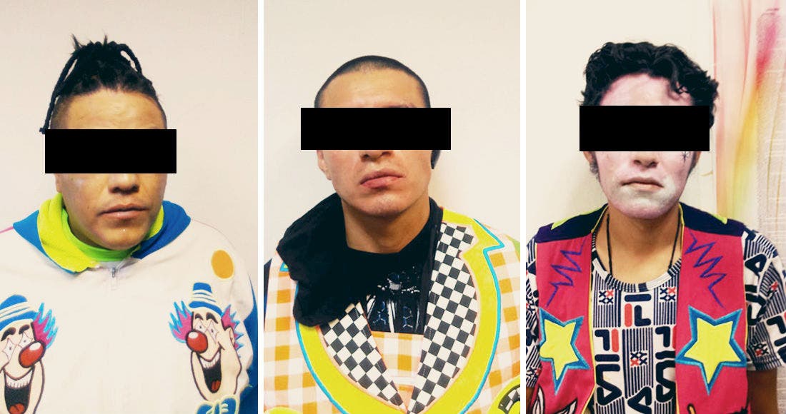 Tras una oportuna intervención, los elementos policiacos lograron asegurar a los tres sujetos, los cuales iban disfrazados de payasos y que fueron identificados como Ángel “N”, de 24 años; Ulises “N”, de 25; y Gerardo “N”, de 35.