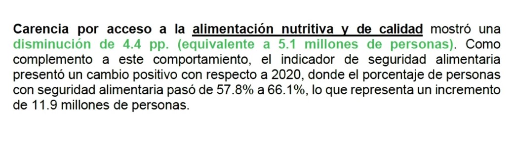 También celebró el avance en la seguridad alimentaria porque eso significa que hay menos hambre en México.