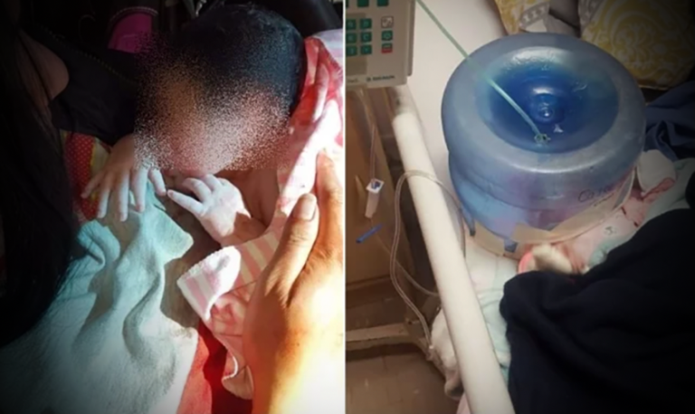 Al llegar de nueva cuenta al nosocomio, los enfermeros asistieron al bebé pero la polémica inició cuando colocaron a la recién nacida en una incubadora conformada por un garrafón de agua, ya que la bebé presentaba problemas de bronquitis.
