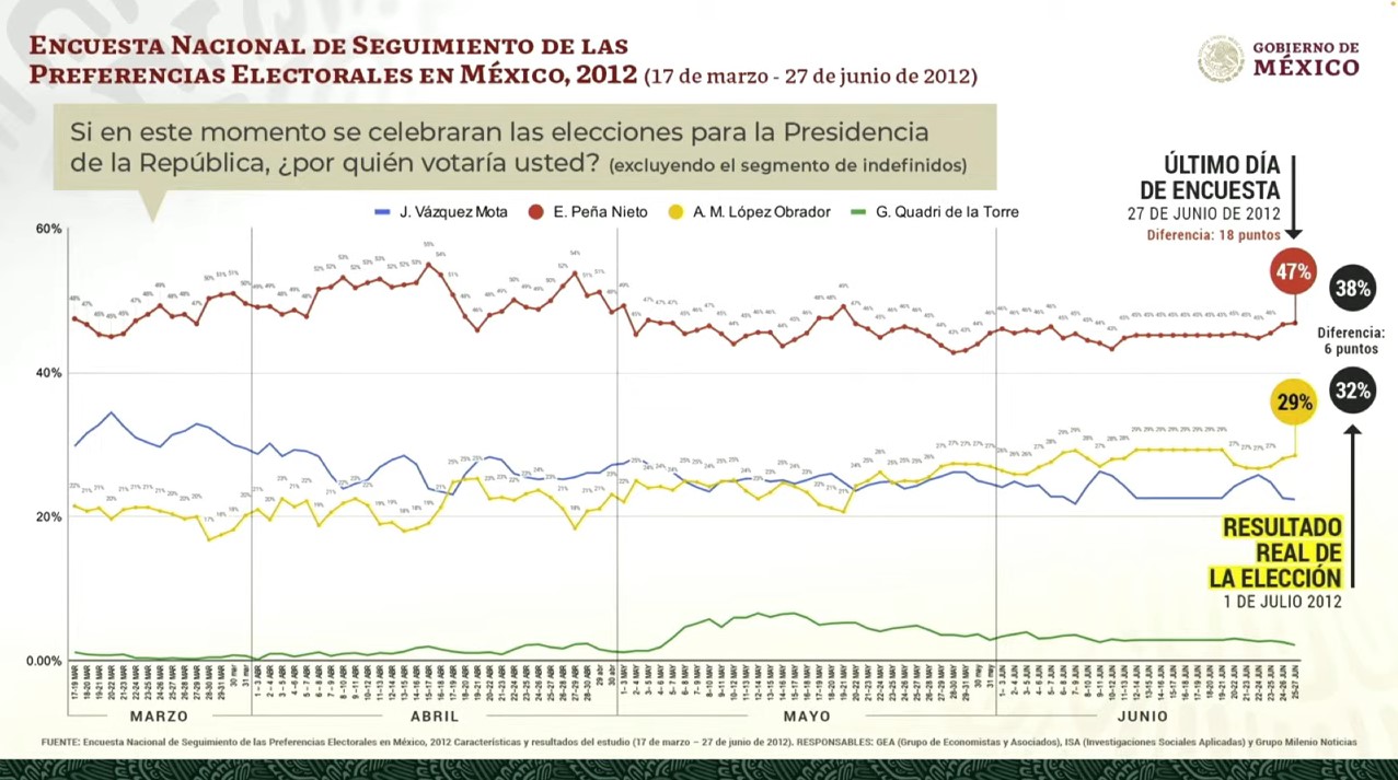 López Obrador acusó que en dicha consulta se mostraba a Peña Nieto con una ventaja superior de sus contrincantes en las preferencias de voto, lo que ocasionaba que la gente ya no le viera sentido acudir a votar, pues se pensaba que la elección ya estaba definida.