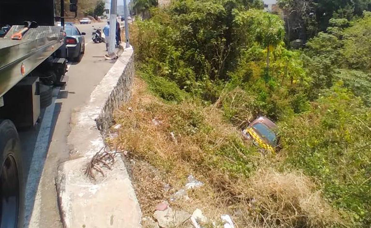 Un vehículo cayó a un barranco en la transitada avenida Escénica en Acapulco, dejando ileso al conductor.