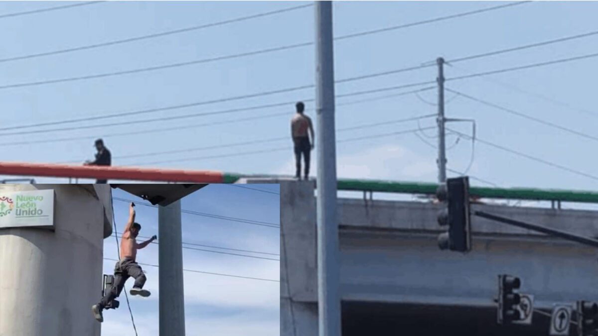 Testigo de los hechos grabaron en todo momento las acciones del hombre, quien tardó arriba del puente, en el cruce de la carretera a Laredo con Sendero Divisorio en la colonia Valle de la Cañada, en el municipio de Escobedo, Nuevo León.