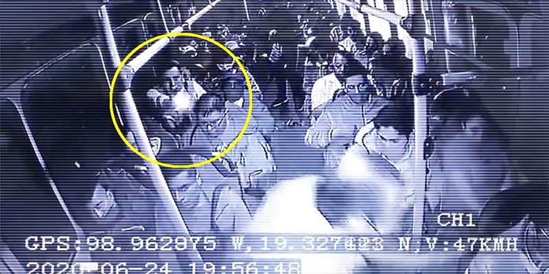 En un video que fue difundido en redes sociales se observa cómo un hombre con tapabocas y una pistola amaga a los pasajeros para que entreguen sus pertenencias.