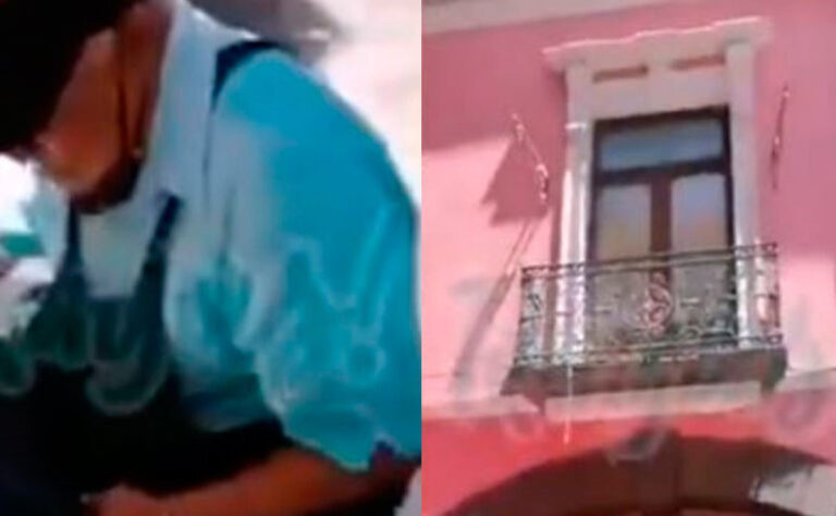 En redes sociales se compartió el video en donde explican que al adulto mayor quien trabajaba en el centro histórico de Puebla le tiraron una cubeta con agua.