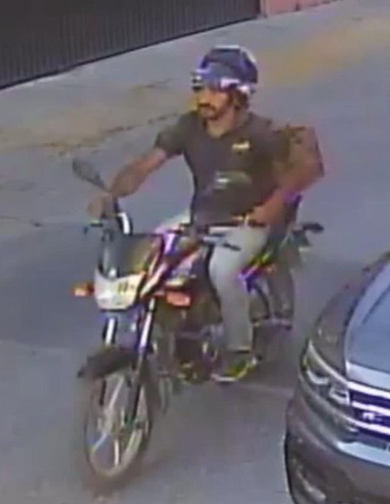 Segundos después aparece a cuadro un sujeto a bordo de una motocicleta, el cual se acerca a gran velocidad a la jovencita y la ataca picándola con un picahielos en un glúteo.