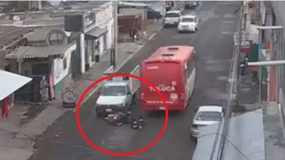 En la grabación se aprecia que la moto en la que viajaba la niña circula junto al camión y, al tratar de rebasar, se topa de frente con una camioneta, que se detiene para evitar un choque.