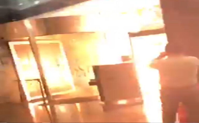 En redes sociales se hizo viral un video en donde se observa la explosión de un petardo en la entrada del edificio, cabe mencionar que las personas intentaron resguardarse, sin embargo, no se registraron lesionados.