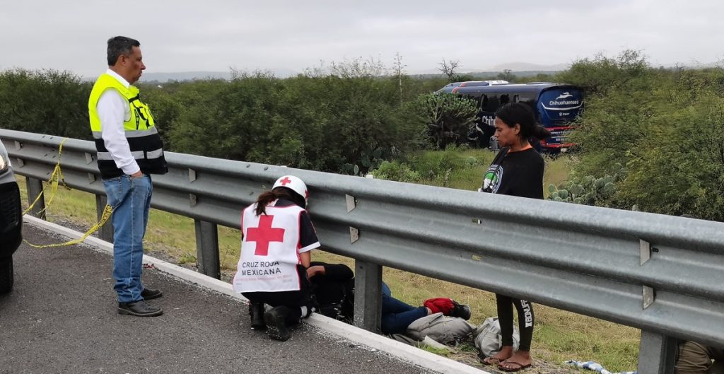 Fuerte accidente sobre la carretera a Zacatecas e. El libramiento Norte a la altura del kilómetro 22 en la comunidad Las Moras, chivan tres autobuses con pasajeros y un trailer uno de ellos transportaba migrantes. pic.twitter.com/O7ZewoZ009— TriánguloRojo (@TrianguloRojo01) October 26, 2022