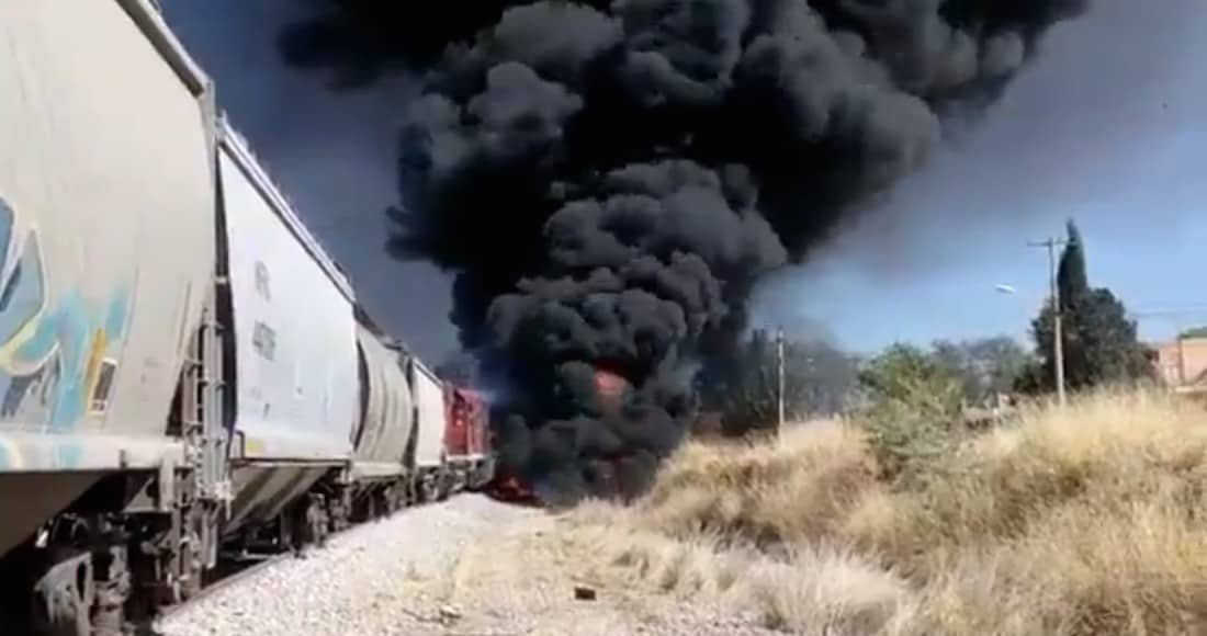 A través de redes sociales usuarios han compartido videos, donde se observan decenas de vagones de carga y al final humo negro que se esparce en el aire de la sierra de Aguascalientes.