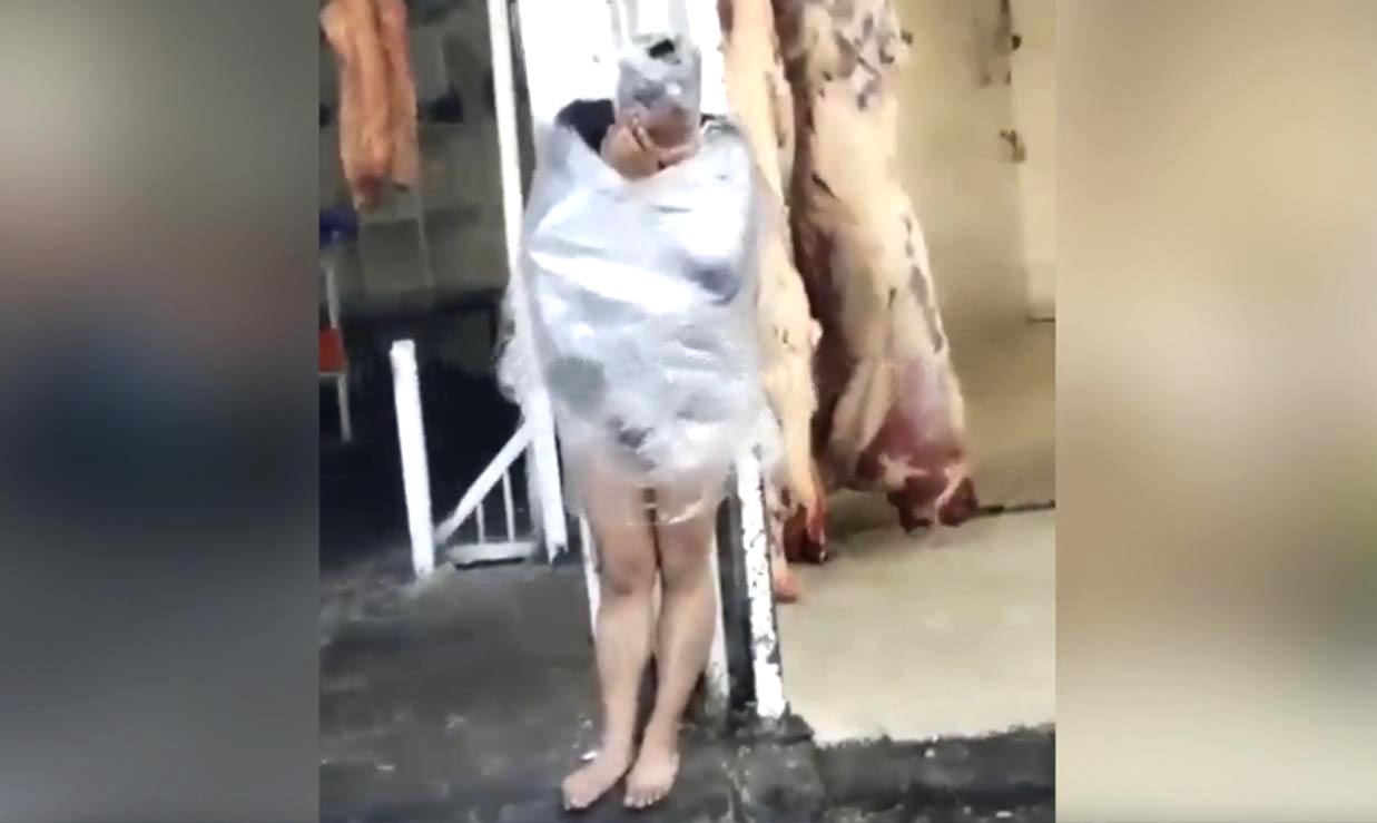 Allí, pese a las súplicas del supuesto asaltante, lo desnudaron de manera violenta para luego atarlo a un poste con abundantes capas del polietileno conocido como Vitafil, en lo que comúnmente llaman los comerciantes «emplayar».