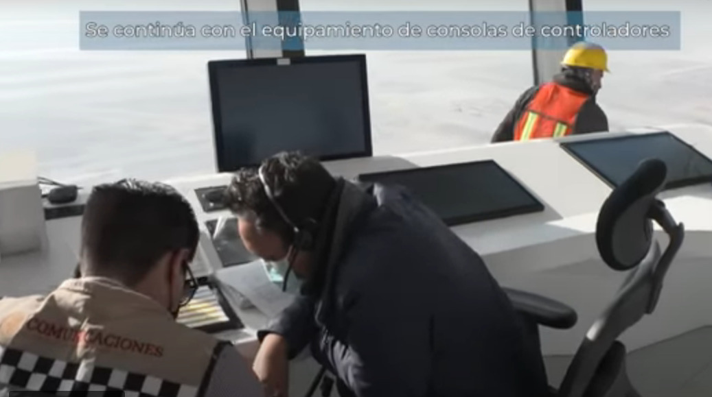 La Sedena indica que en la Torre de Control y el Servicio de Extinción de Incendios (SEI), se continúa con el equipamiento de las consolas de controladores, así como el equipamiento con mobiliario de los edificios administrativos.