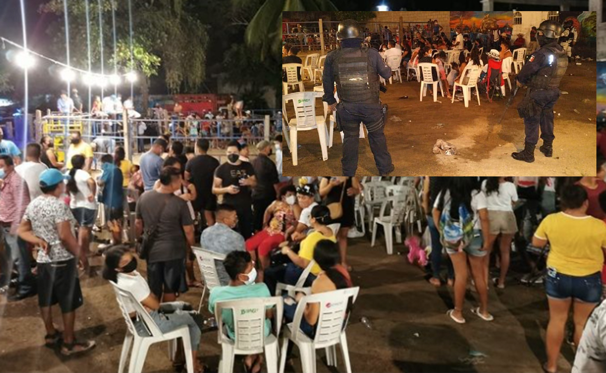 Debido a que las mas de 500 personas que se encontraban en este lugar, no respetaban las medidas y protocolos sanitarios, fue disuelta por los elementos policiacos tras una denuncia ciudadana.