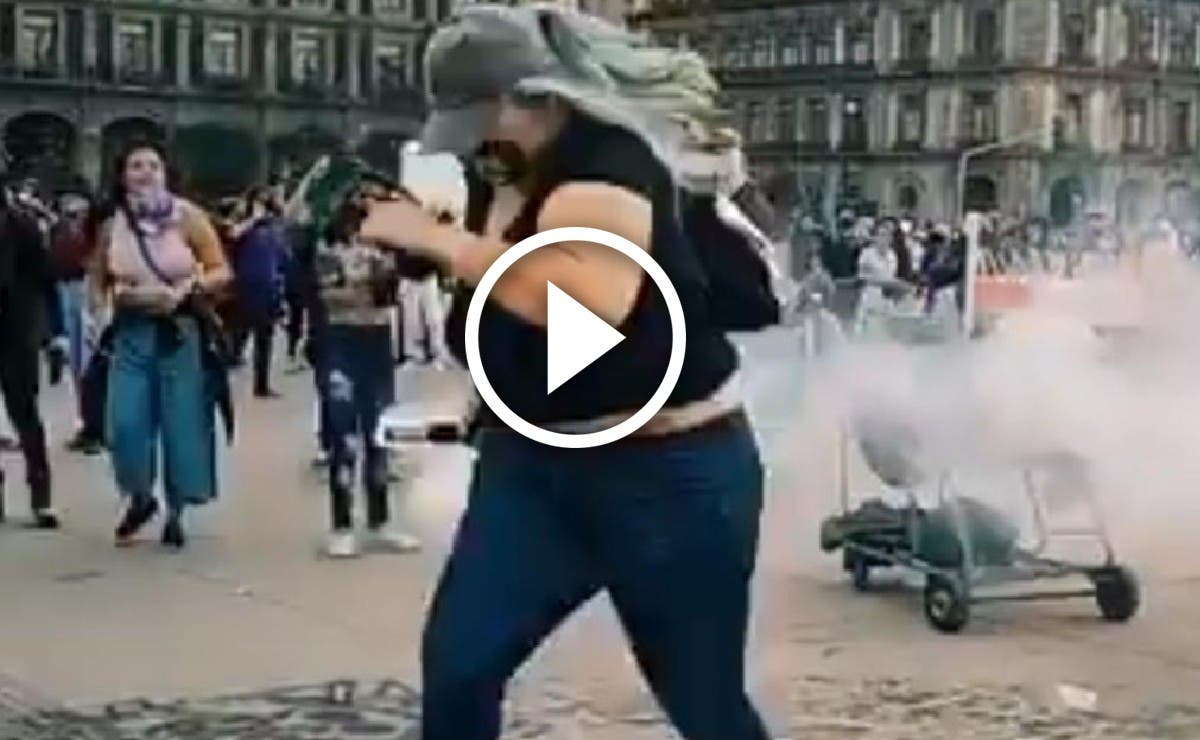 La Reinota, una de las miles de mujeres que se manifestaron este #8M (8 de Marzo), se hizo viral luego de que devolviera una bomba de humo a los policías que resguardaban el Palacio Nacional.