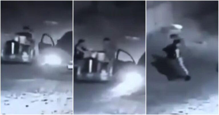 A través de un video que circula en redes sociales se observa cómo un hombre desciende de un automóvil con las luces encendidas para supuestamente comprarle producto al comerciante.