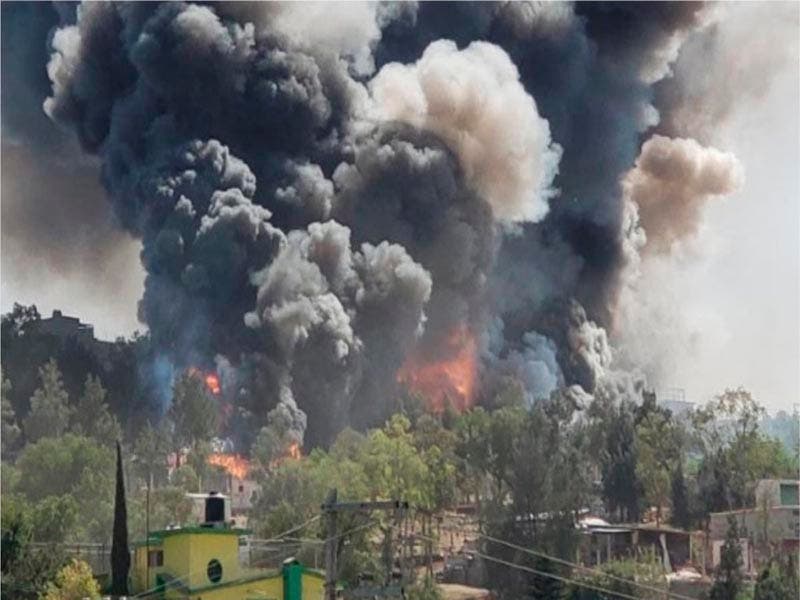 Reportan una fuerte explosión en el poblado de San Vicente Chicoloapan cerca de la zona de Chimalhuacán, en donde se encuentra el tianguis pirotécnico.