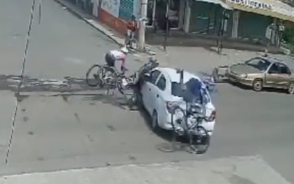 Imprudente automovilista causa carambola de ciclistas en Puebla