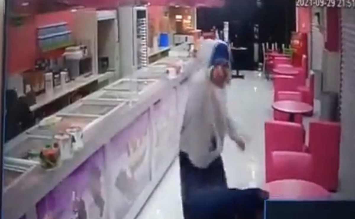 En el video, captado por las cámaras de seguridad del establecimiento, se puede ver que la víctima vestía ropa en color negro, (bermuda y sudadera con gorro).
