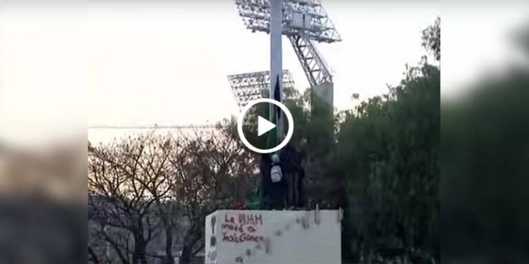 Sobre la tela los encapuchados escribieron la leyenda “Jesús”, haciendo referencia al nombre del estudiante del CCH Azcapotzalco, quien murió el 7 de enero.