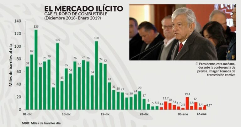 También dijo que se entregaron permisos de importación de gasolina “en demasía”, por un millón 500 mil barriles diarios, pero no se utilizan. “Sin ánimos de confrontación, buscando acuerdos, vamos a establecer comunicación con los poseedores de estos permisos para que puedan ser operados, utilizados, que si hay obstáculos burocráticos se quiten”, dijo. Recalcó que también se seguirá actuando en lo legal y que espera que esta semana el Congreso apruebe la iniciativa para que se convierta en delito grave el robo de combustible y la corrupción.