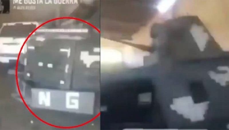 A través de redes sociales, es posible apreciar material videográfico que muestra un presunto auto con blindaje, además que tiene pintura de camuflaje, similar a la usada en automotores militares.