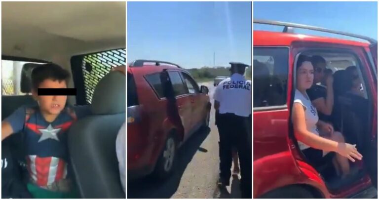 A través de un video que circula en redes sociales, se observa al menor viajar en la parte trasera de la cabina de una patrulla de la PF, y segundos después es ayudado para descender y ser entregado con su familia, quienes se muestran asombrados al verlo con los policías.