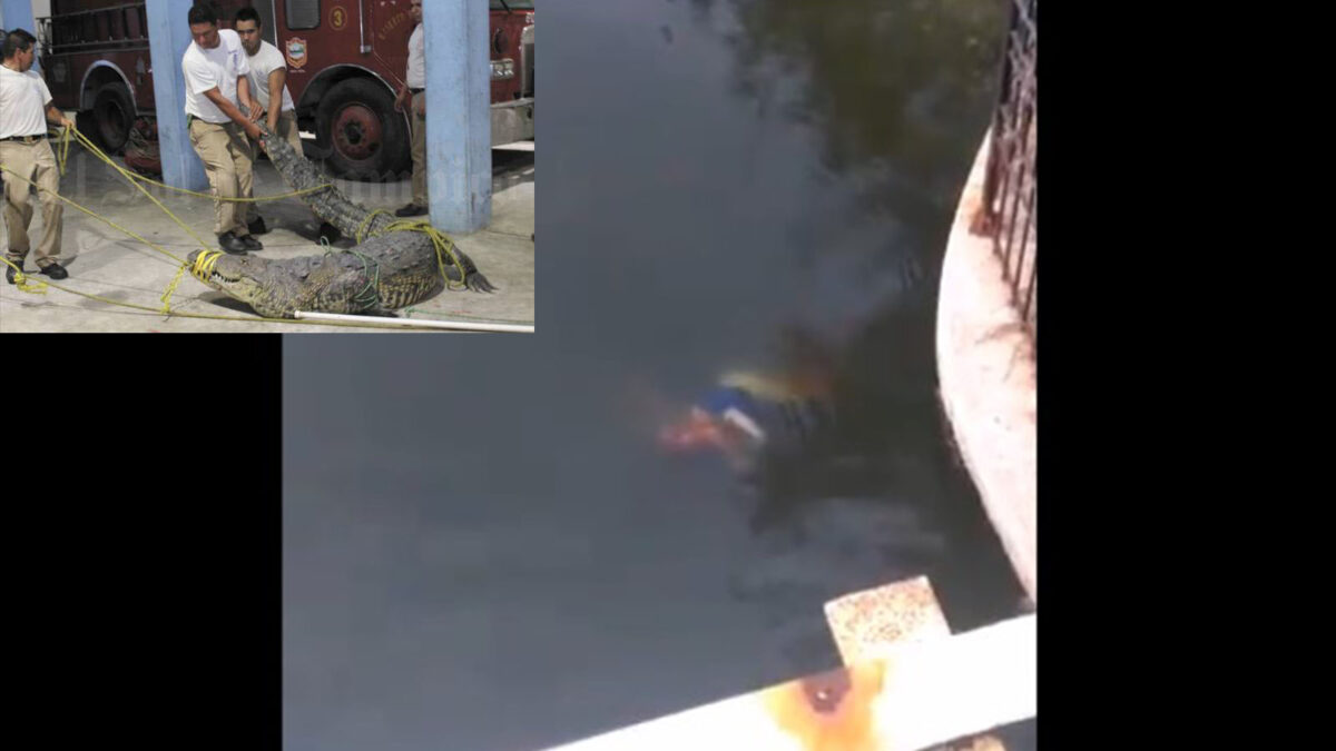 #Bomberos de #Tampico "lucharon" contra un #cocodrilo de tres metros para rescatar el cuerpo de una mujer.