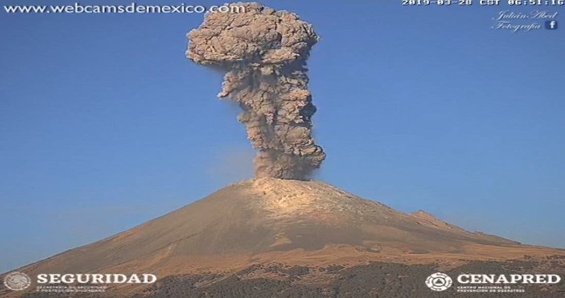 Por su parte, la Coordinación General de Proyección Civil de Puebla subrayó que la columna eruptiva estuvo acompañada de ceniza y se desplazó con dirección al sur.