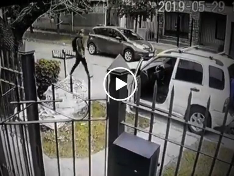 Como se alcanza a ver en las imágenes, un hombre estaba revisando la parte trasera de su camioneta, cuando de pronto dos sujetos aparecen en escena y lo agarran por la espalda.