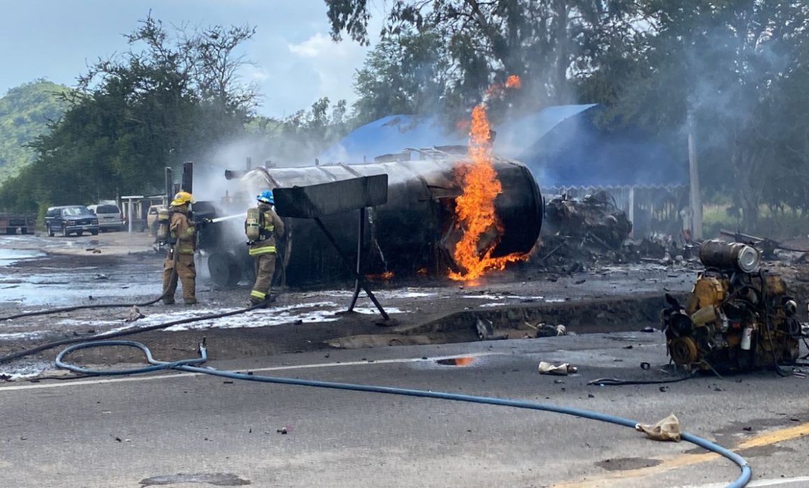 Tras reportarse el accidente, elementos de bomberos de los municipios aledaños y de la Unidad Regional de Protección Civil y Bomberos llegaron al lugar para atender el servicio, por lo que luego de controlar las llamas confirmaron el fallecimiento del chofer de la pipa, quien quedó calcinado.