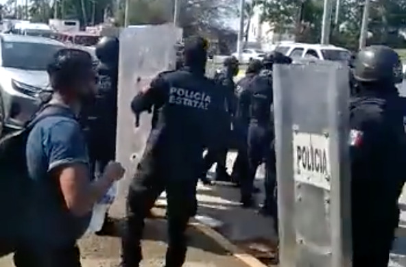 Los policías auxiliares que dependen del estado, se encontraban bloqueando el Boulevard de las Naciones en la exclusiva zona diamante de Acapulco, una de las playas más visitadas de México, cuando sus compañeros antimotines del Gobierno estatal de Guerrero llegaron a desalojarlos a golpes y empujones.