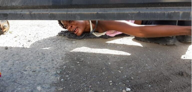 De acuerdo a un vídeo filtrado a medios, una mujer de Haití se acercó al portón de entrada y acostada en el suelo llamó la atención de los reporteros ya que suplicaba ayuda para ella y su hijo de forma dramática además de que acusaba las fallas al interior del albergue.